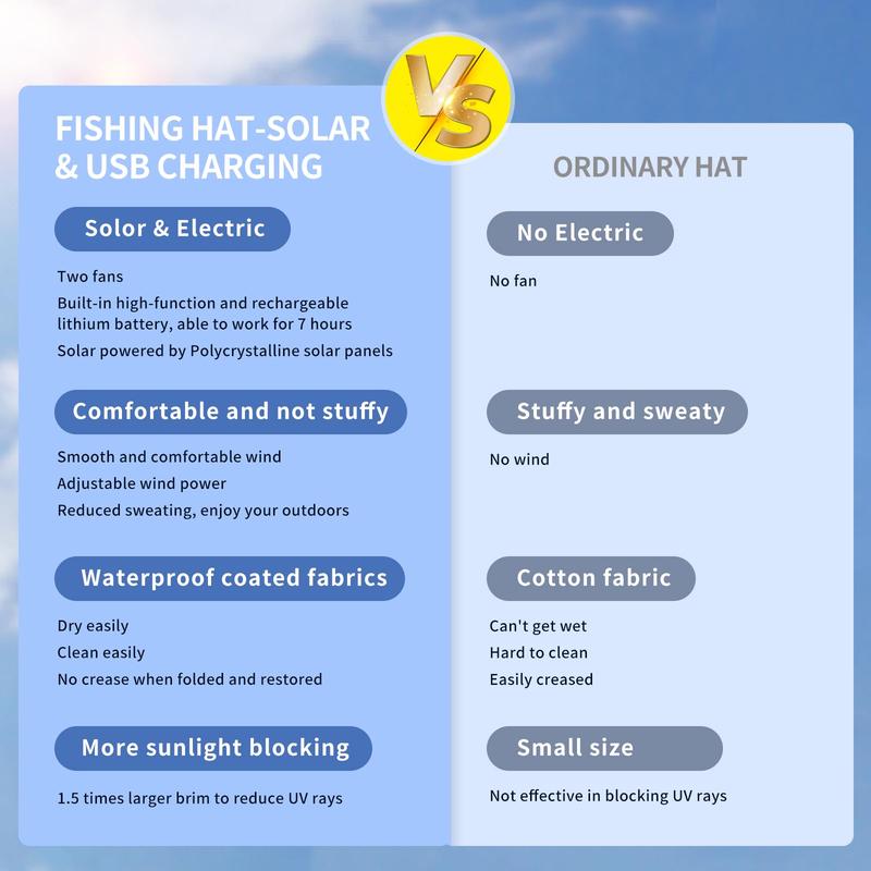đ„ Wide Side Solar Fan Outdoor Fishing Hat,đ USB Charging, Cool in Summer!âš